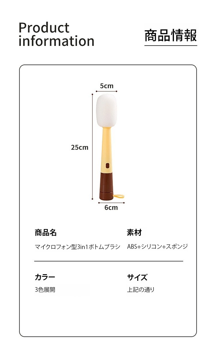 マイクロフォン型3in1ボトムブラシ