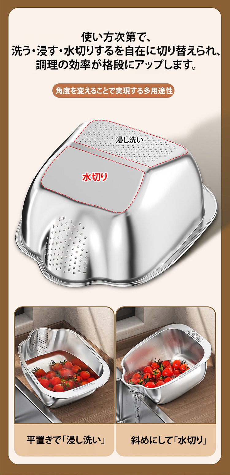 多用途ステンレス洗浄ボウル